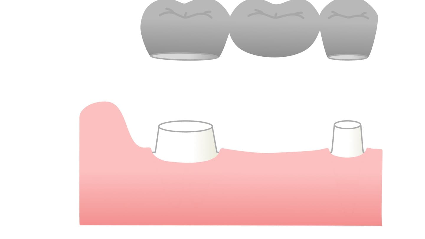 ブリッジは、抜けた場所を健康な歯で挟んでブリッジ(橋)のように被せ物をすることからその名称がついています。